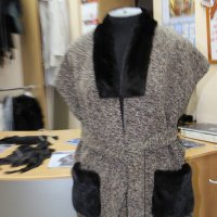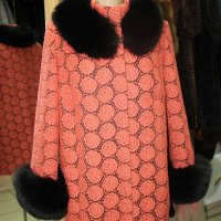 - пошив одежды из ткани (жаккард, драп, пальтовая ткань, костюмная ткань, кружево): пальто, кардиганы, пиджаки с отделкой из натурального меха, бомберы